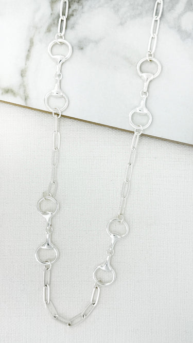 Long Necklace with Large Chain Links and Double Clasp Detail