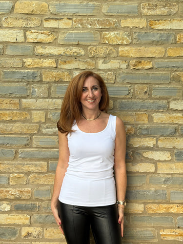 Vest top with wider strap, ideal for covering bra straps. Staple piece, can be worn alone or under fine knits or other styles. Other colours are available in this style.