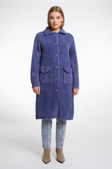 The Dycke coat from Rino & Pelle is made from the softest fabric giving it a cosy and chic style. The coat falls just below the knee and has a feature button front to 3/4 of the way down, flat pockets with buttons at the cuffs and just below the collar on the back. A gorgeous piece in a striking blue that will compliment a casual look.