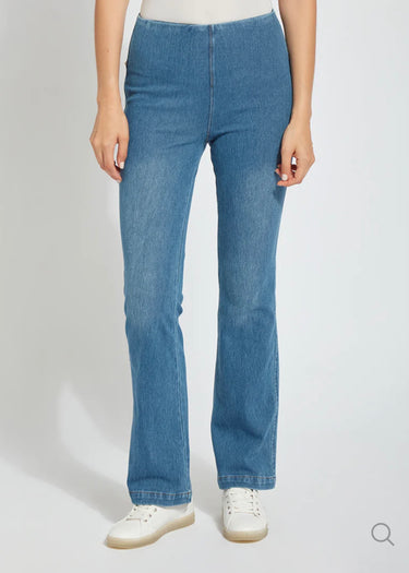 The Baby Bootcut jeans have become a staple at Cristal Boutique. They skim the legs perfectly, falling into a slight flare at the bottom. These are a full-length jean with a high waisted fit. We also offer them in Black and Indigo.