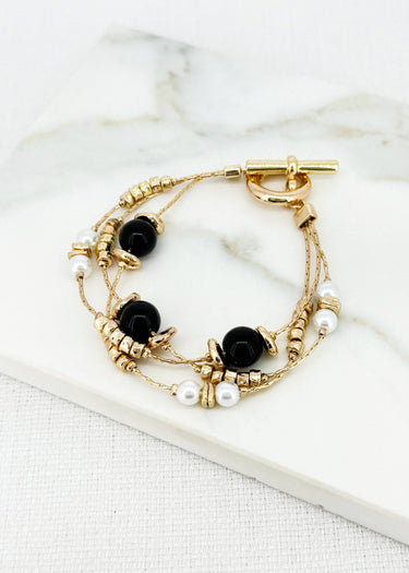 Layered bracelet with black and pearl beads