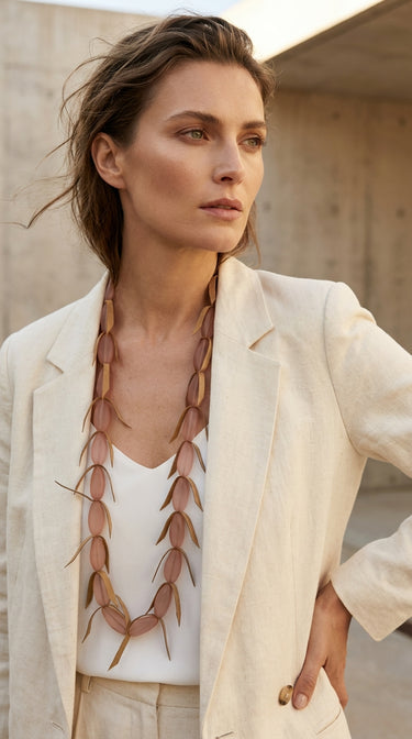 Long Beaded Tassel Necklace - Brown