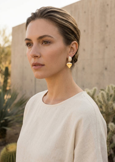 Disc Drop Earrings in Gold with Cream Studs