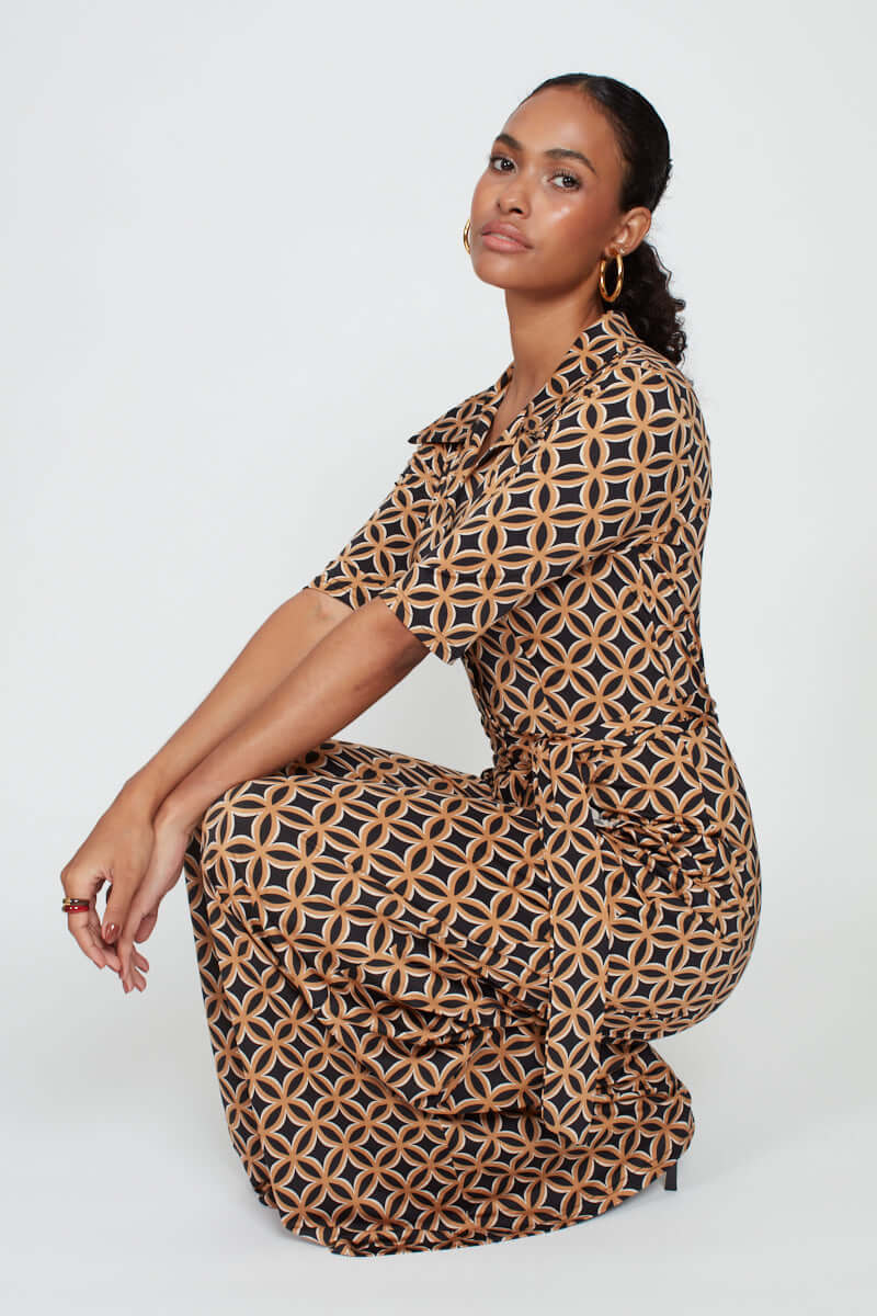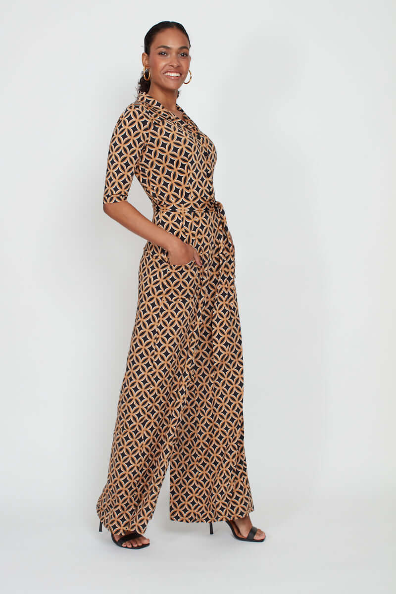 Phoenix Geo Print Jumpsuit - Brown Mix