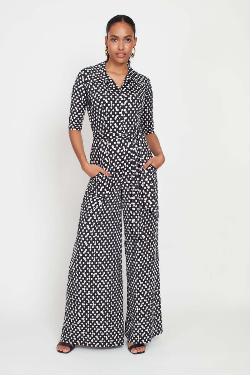 Phoenix Metallic Polka Dot Jumpsuit - Black/White
