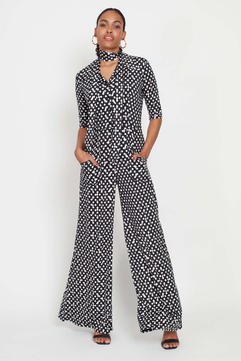 The Phoenix Jumpsuit from Onjenu is a fabulous piece that offers versatility - wear for lunches out with trainers or elevate your look with heels and jewellery for special occasions. This design is perfectly on trend for the autumn/winter season in a polka dot print.