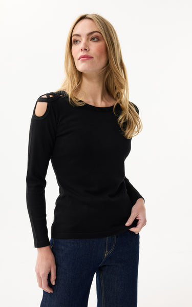 Open Shoulder Knit Jumper - Black by Leo & Ugo Open Shoulder Knit Jumper - Black by Leo & Ugo