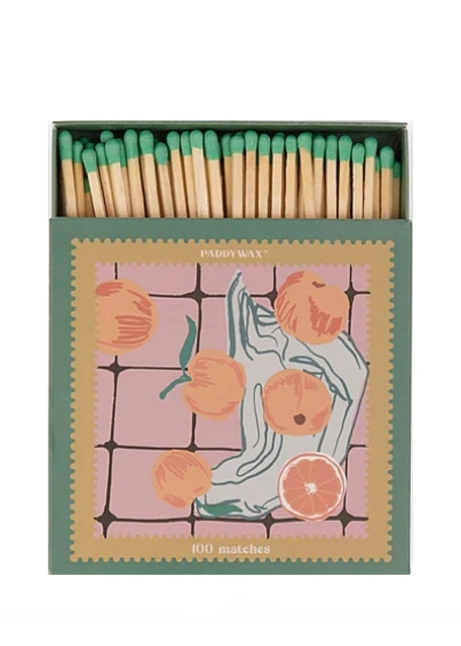 Every candle has its match. This set of 100 matches come in a hand illustrated work of art matchbox. Each box features two strikers, and all 100 match tips are coloured to match the design. Jumbo matches are a perfect accessory to gift with any Paddywax candle.