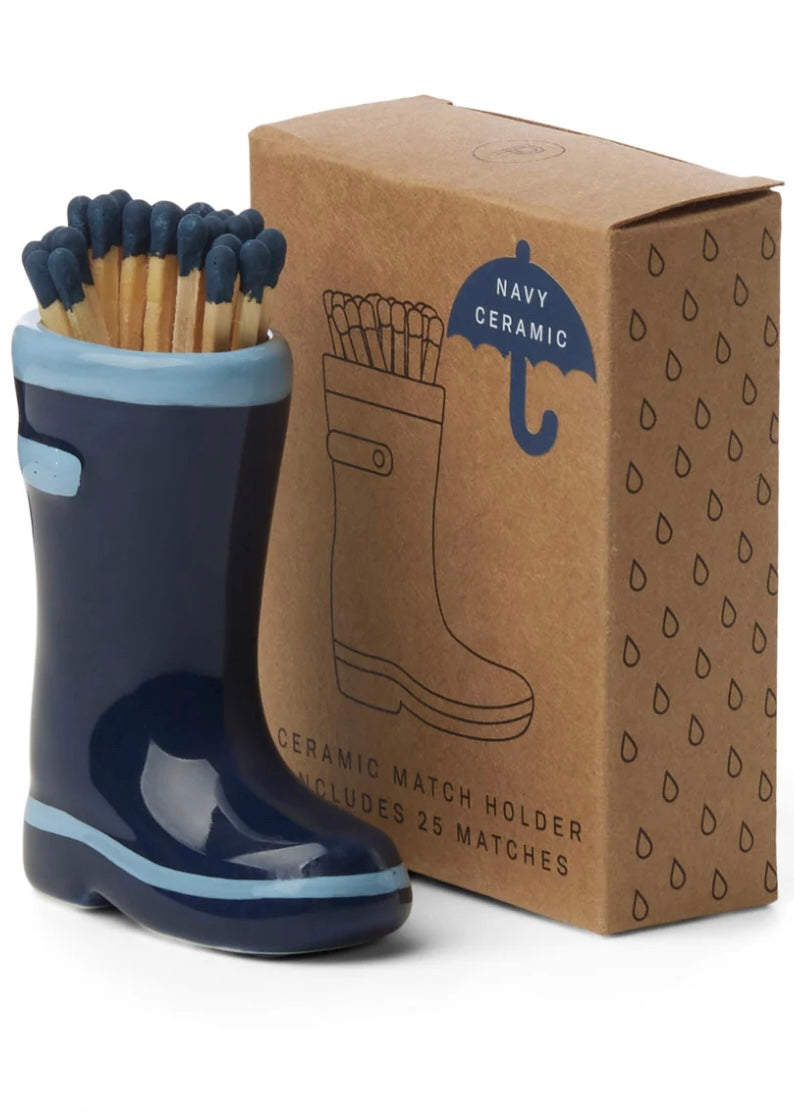 - Includes: 25 colourful safety matches with ceramic wellington boot match holder