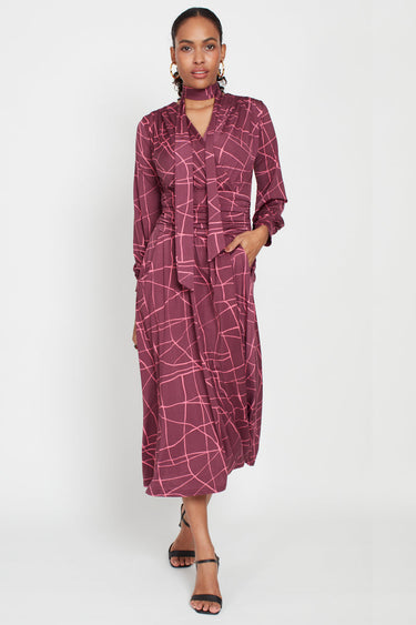The Sharon midi dress from Onjenu is the brand's signature dress. Features a flattering v-neckline, double ruched waistband, full length bell sleeves with cuff detail and a slightly A-line skirt with pockets that falls to a midi length.