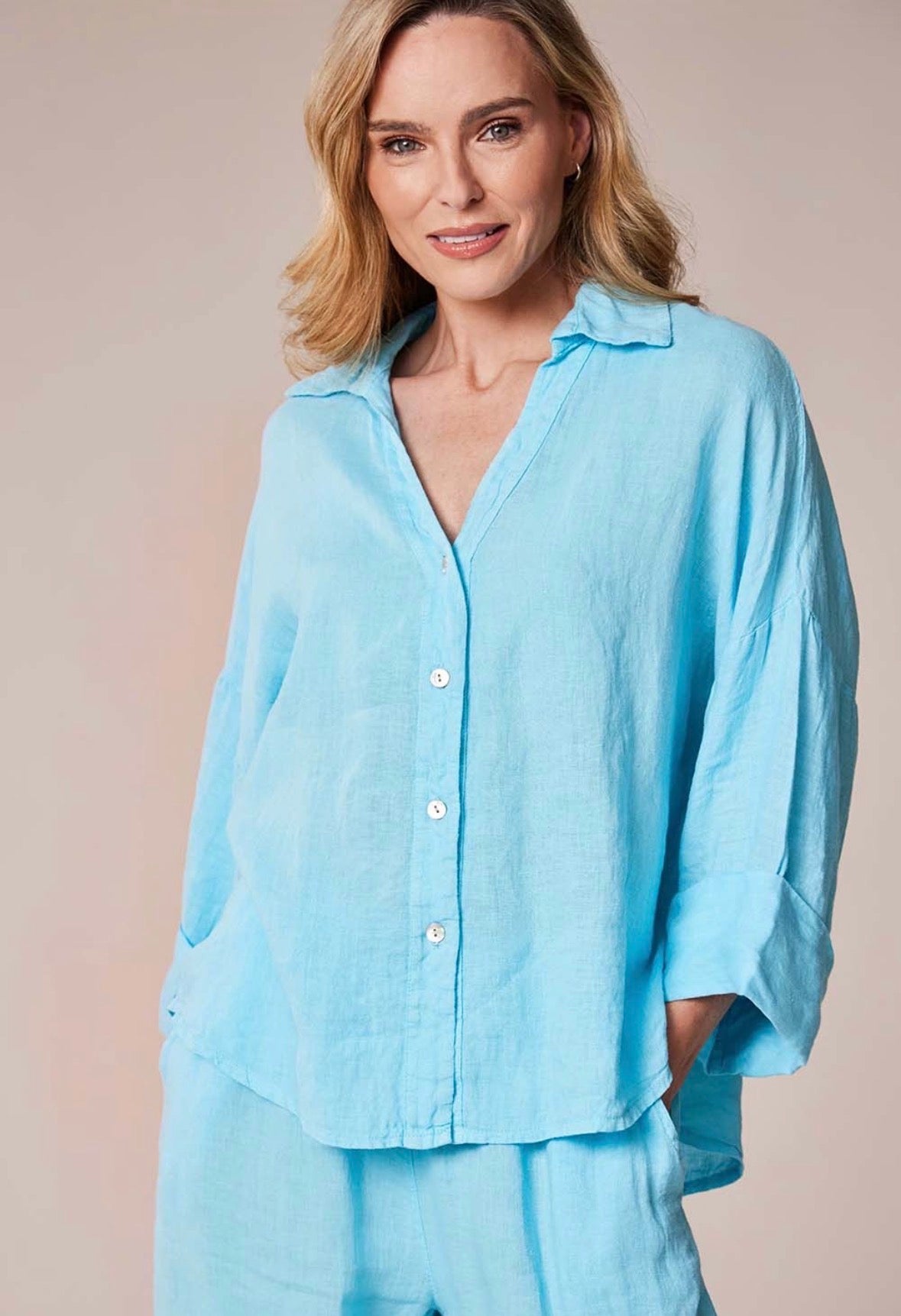 Pure Linen Shirt - Turquoise