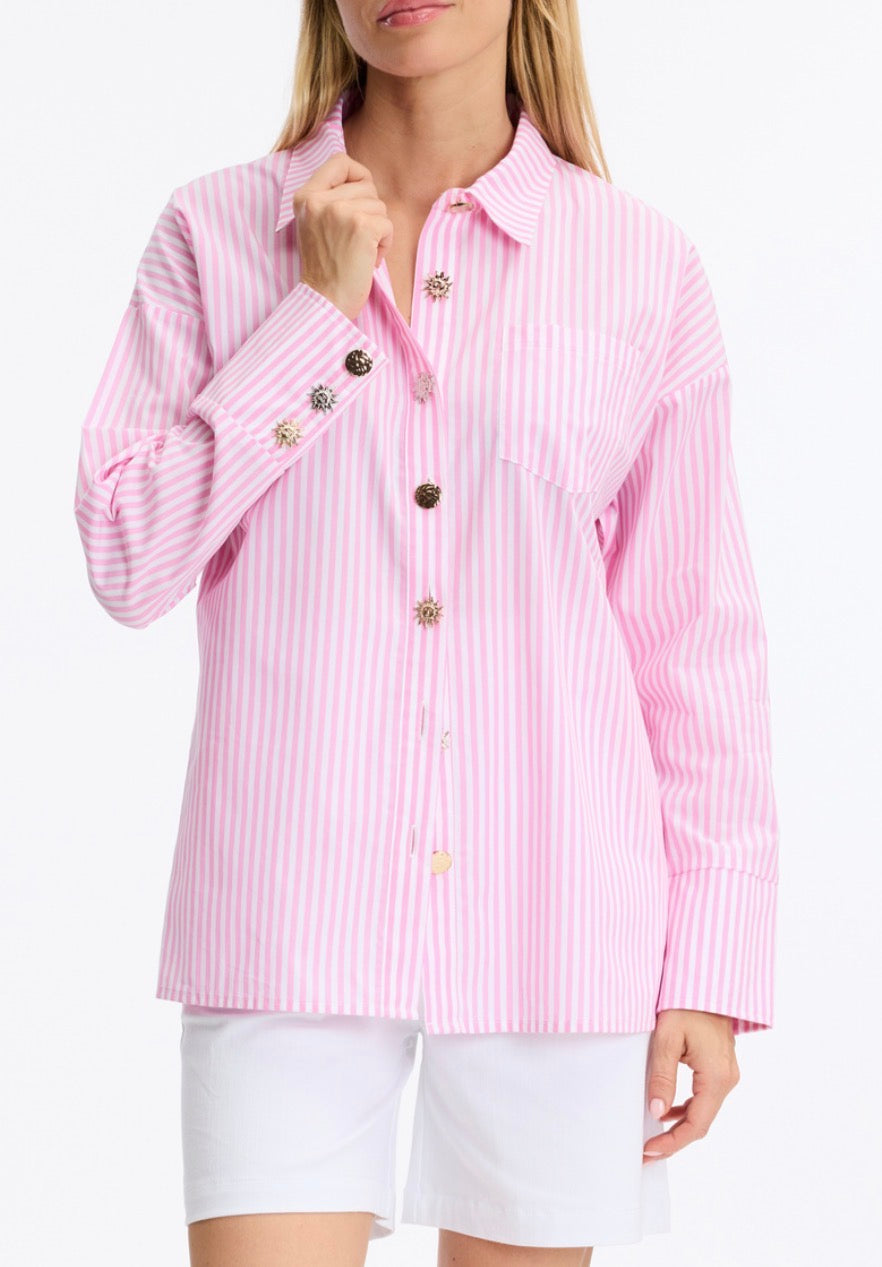 Striped Statement Button Shirt - Pink/White