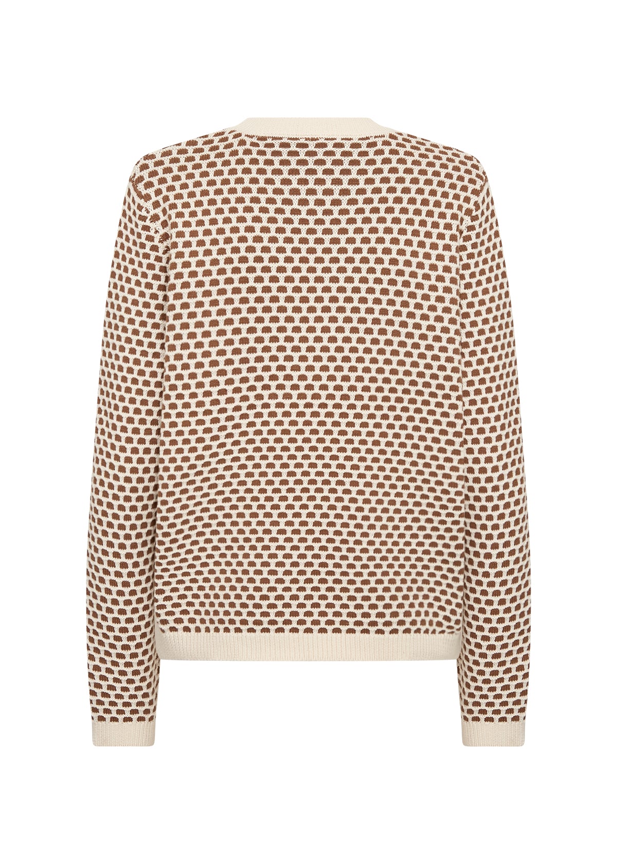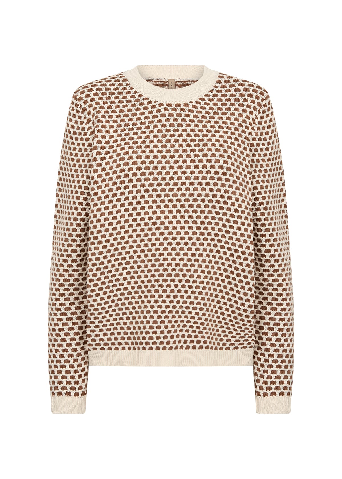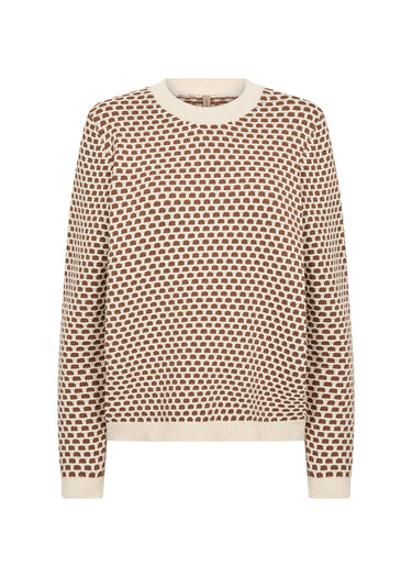 The Bibbi Jumper from Soya Concept is a great knit for your spring wardrobe, featuring a standard fit with a textured design in toffee and ecru. The jumper has a crew neckline with ribbed finishings - perfect for a relaxed look with jeans or trousers.