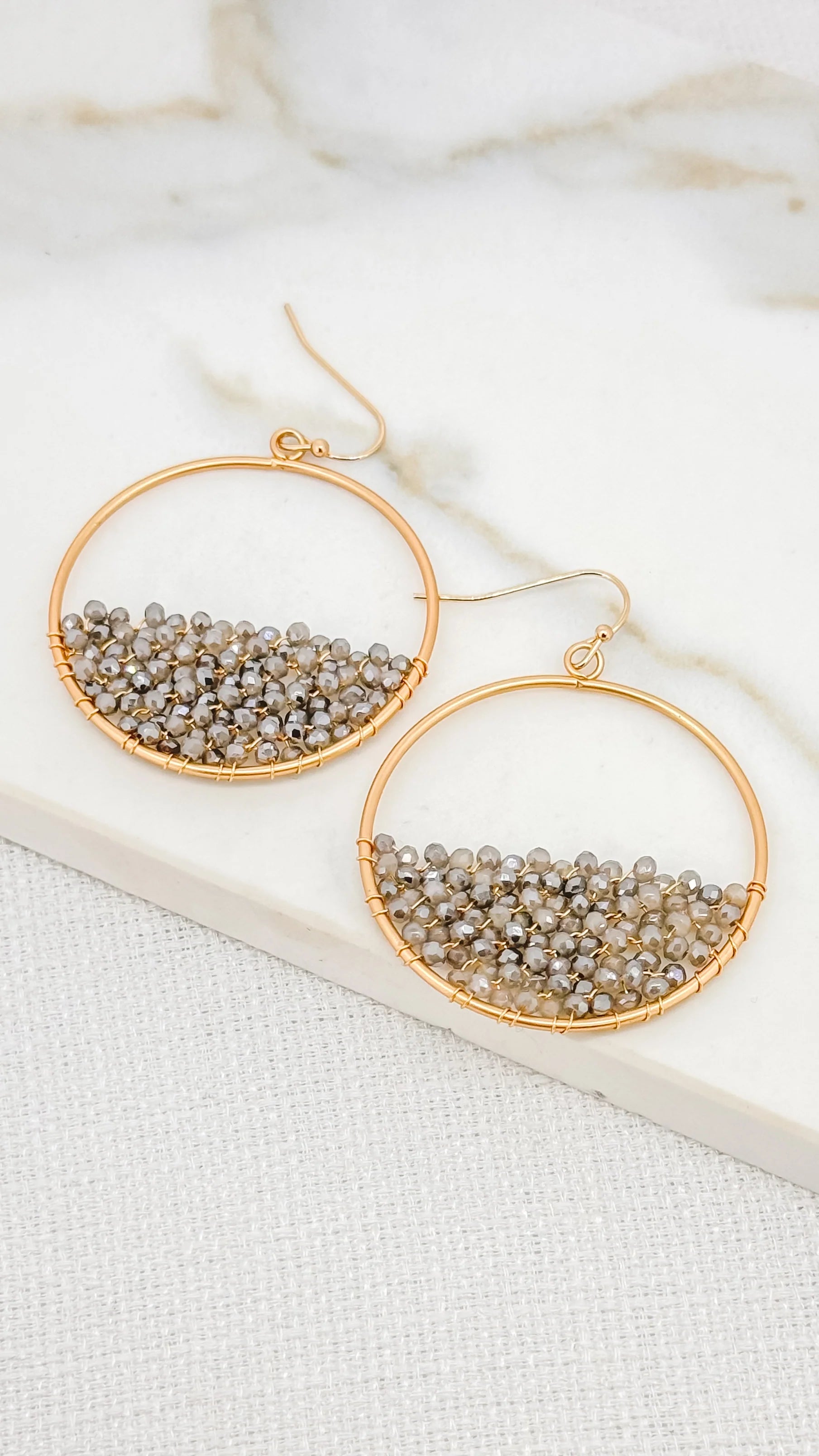 Beaded Circle Earrings - Gold/grey