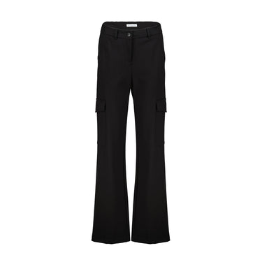 High rise trousers with cargo pockets on the side of each leg. Wide leg style with an inside length of 82cm. Zip and button fastening at the front.