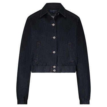This denim jacket from Red Button offers a contemporary edge to a classic piece with the bomber cut and contrasting stitching. Features a sharp collar, full front button closure, and elasticated waistband and cuffs.