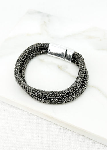 A double layer bracelet with a magnetic clasp with a beautiful sparkle .