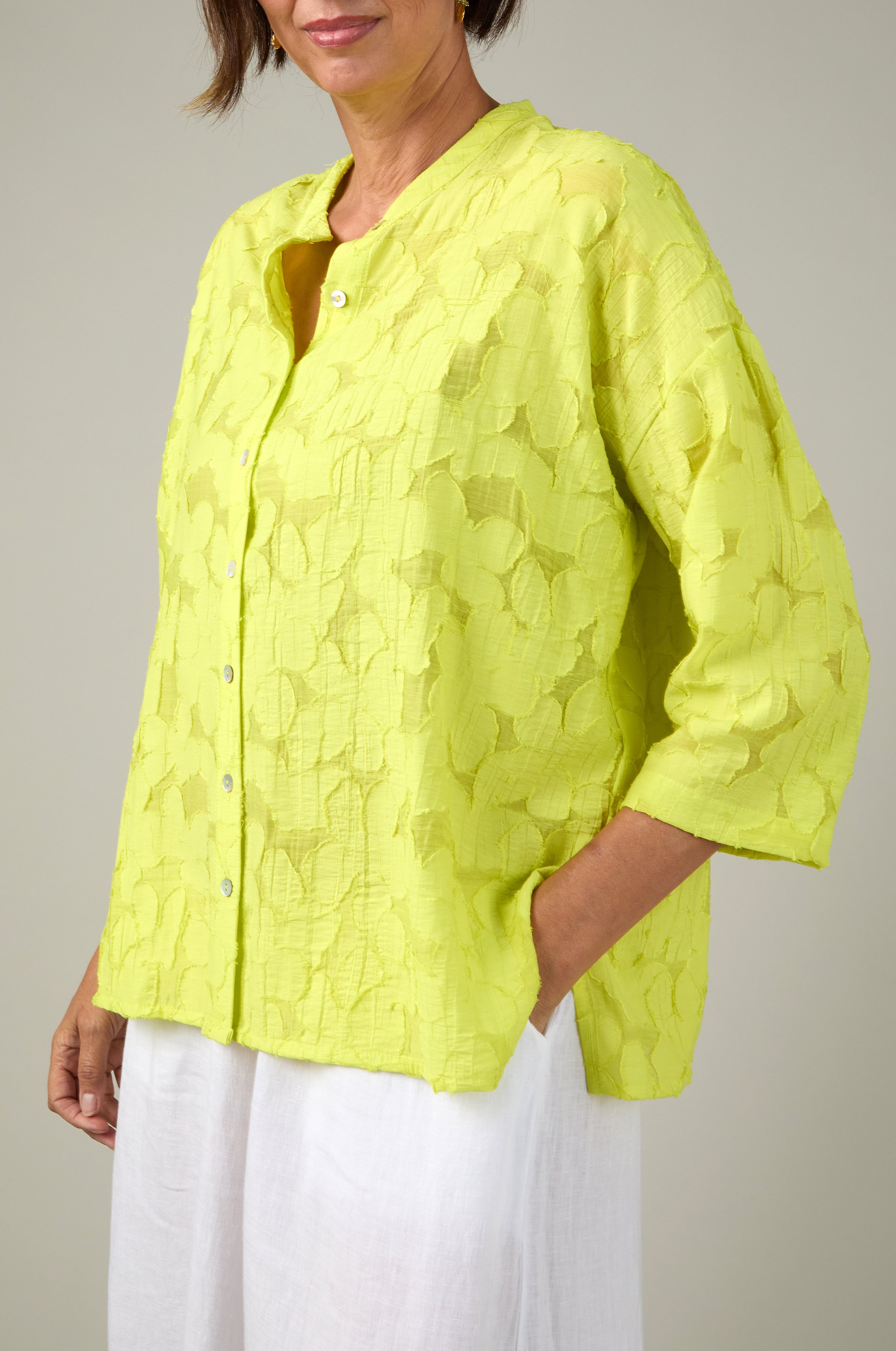 Etched Floral Shirt - Lime