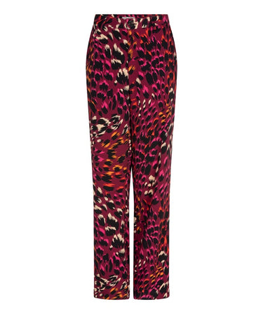Straight leg trousers in a brushed animal print design. Regular fit on the waist with a button closure. Full length leg.