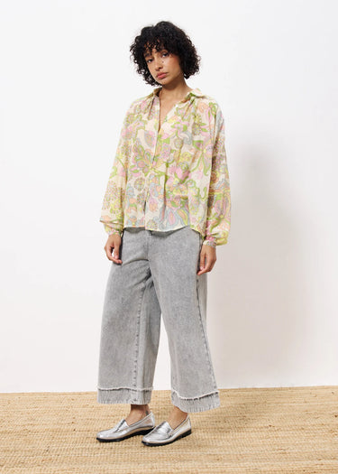 Oversized shirt in an exclusive FRNCH floral print. Shirt collar with button closure throughout the front and balloon sleeves with fitted cuffs.