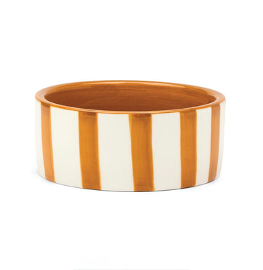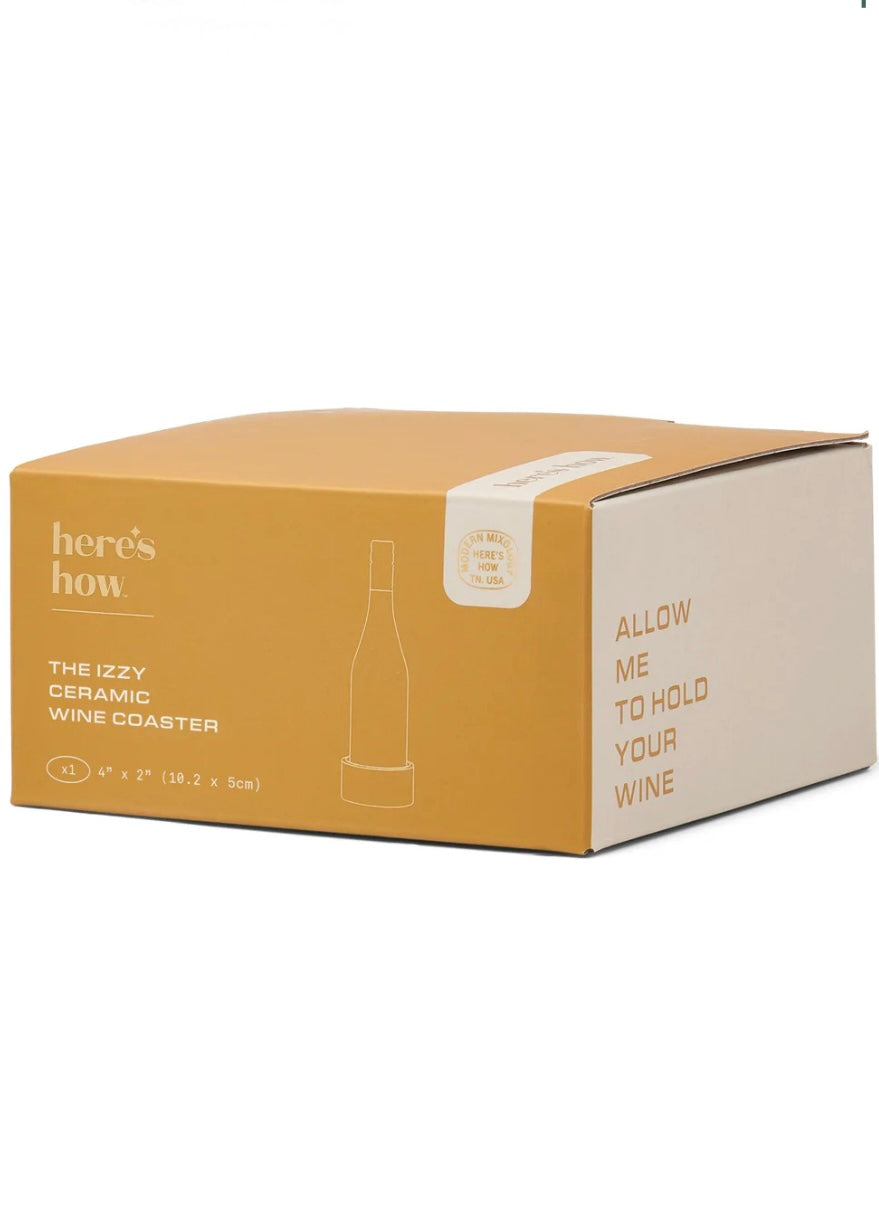 Elevate your wine serving with this ceramic wine coaster. Crafted with a raised lip to keep your bottle steady and finished with a yellow striped design.