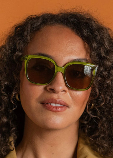 Reading sunglasses with full UV400 protection! Sleek and stylish, Maddie is finished in an on trend deep olive green and comes complete with sprung hinges for extra comfort and a grey felt Goodlookers carry case for safekeeping