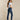 High waisted classic style jeans in a dark wash with a subtle distressed style. Zip and button closure at the front with belt loops. Pockets at the front and back; back pockets have contrasting stitch design.