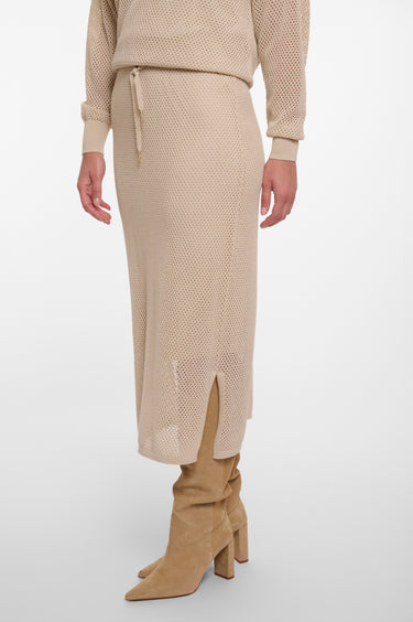 This beautiful perforated knit Midi skirt by Rino & Pelle features an adjustable drawstring waistband, side splits and has a comfortable inner lining.