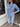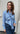 Stripe bow shirt in a blue shade with vertical grey stripes. This shirt features a statement bow tie neckline with a button front throughout. It is a relaxed style in lightweight material for flexibility and comfort. This shirt comes in 3 different shades in the striped style and it is also available in plain white.