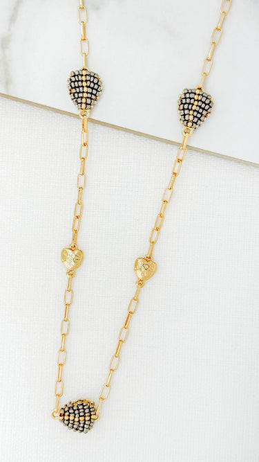 Long Beaded Heart Necklace - Gold by ENVY