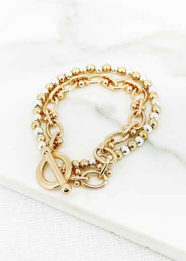 Double Bead/Chain Bracelet - Gold/Silver