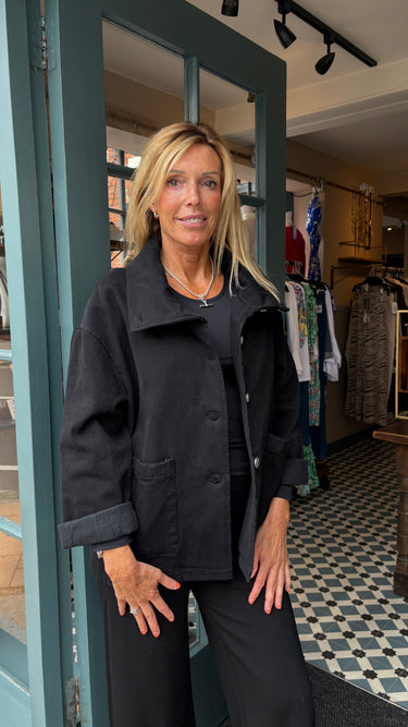 Funnel neck oversized quilted jacket featuring front button fastening, front pockets and military style buttons. It’s a one sized item- fits sizes 10-16.