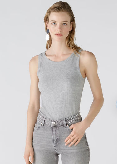 A ribbed vest in grey is a sleek and stylish wardrobe essential, perfect for layering or wearing on its own. It's made to a regular fit, featuring a scoop neckline offering a clean and versatile look. This vest combines simplicity and elegance, making it a perfect choice for both casual and polished outfits.