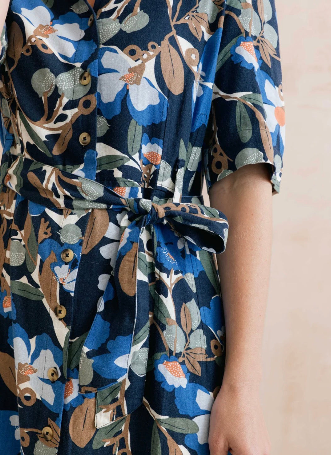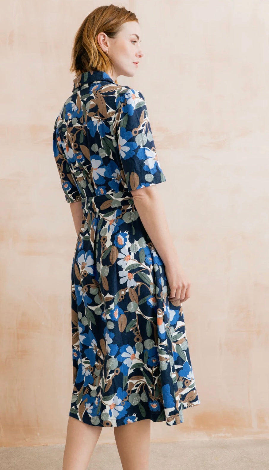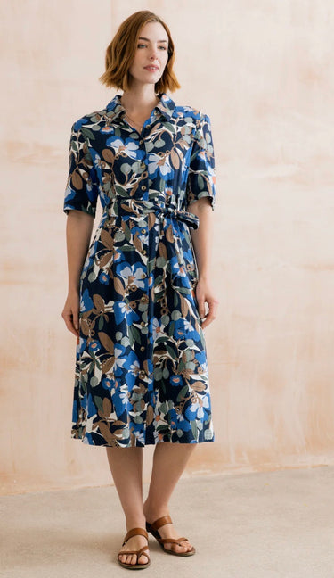 The Robyn dress from Lily & Me will make a beautiful addition to your spring/summer wardrobe. Features a bold floral Ceres print with sun-washed colours, a soft collar, short sleeves, buttoned down placket and a self fabric belt. Side pockets add practicality.