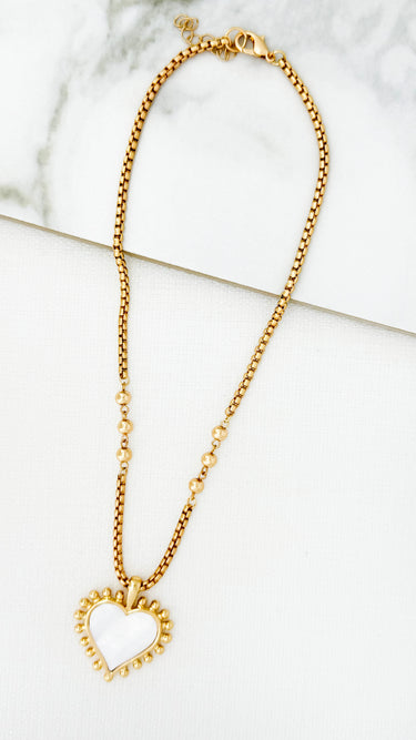 Short White Heart Necklace - Gold