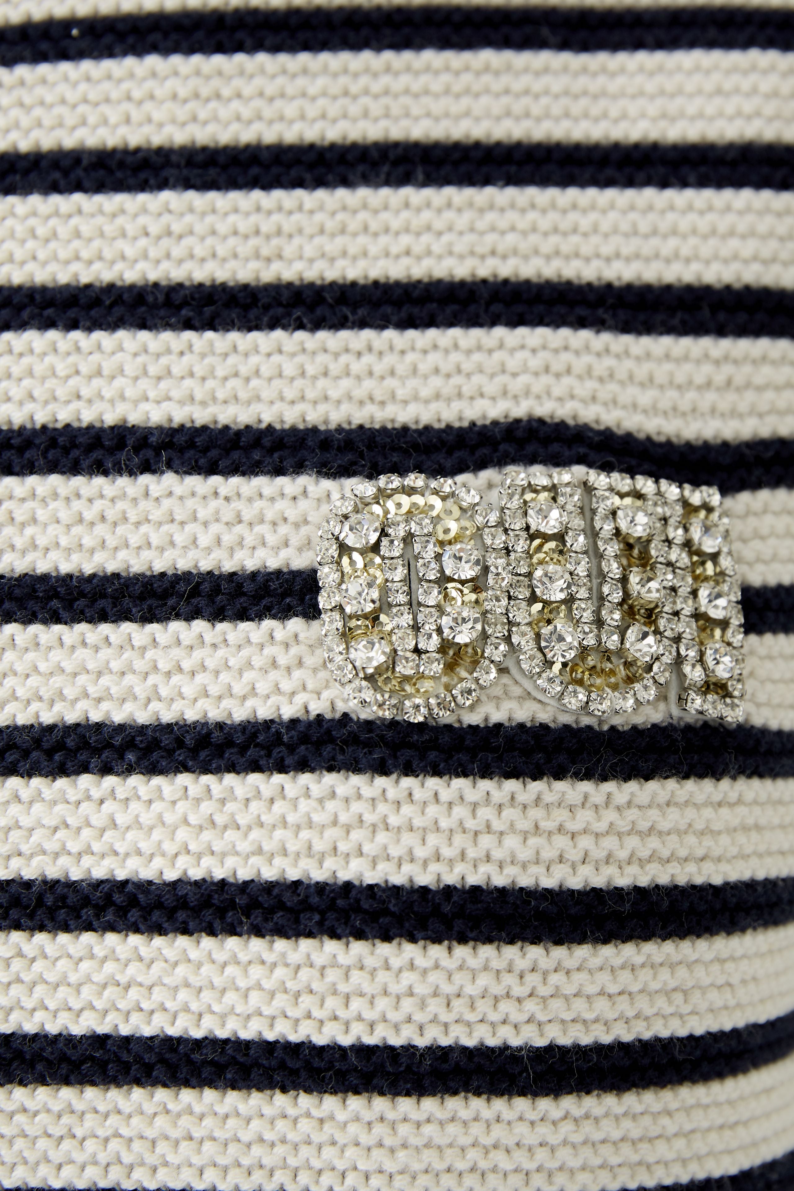 The standout detail is the sparkling diamanté logo on the right side of the chest, adding a subtle hint of glamour to the otherwise casual piece. This jumper can be styled effortlessly with denim shorts, skirts, or tailored trousers, offering a versatile wardrobe piece that blends comfort, style, and a touch of sparkle.