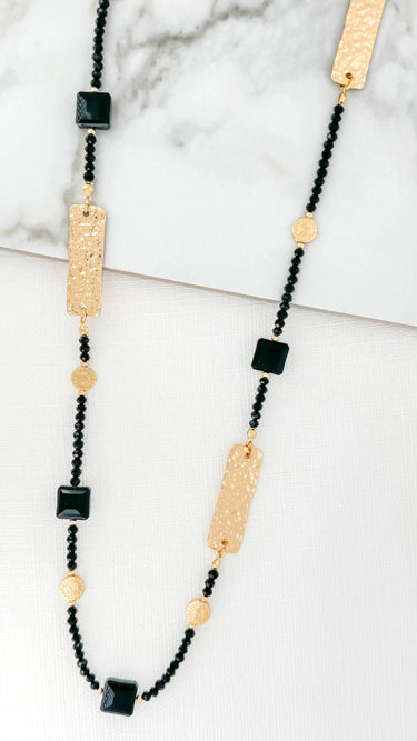 Square Gem Necklace - Gold/Black