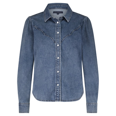 The Victoria shirt is a classic denim shirt with western detailing, it is a staple for the wardrobe that offers versatility; transitioning through the seasons. The shirt has a beautiful cut and subtle puff sleeves with press buttons through the front and at the cuffs. A great piece to layer; wear underneath a cosy jumper or pop a pretty vest underneath. This is a shirt you can wear again and again.