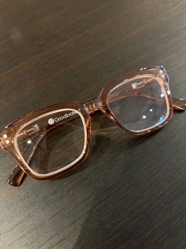 Wonderfully Weybridge! A new rectangular frame with a transparent brown finish. Perfect for every day wear. Complete with sprung hinges for extra comfort and a matching Goodlookers carry case for safekeeping.