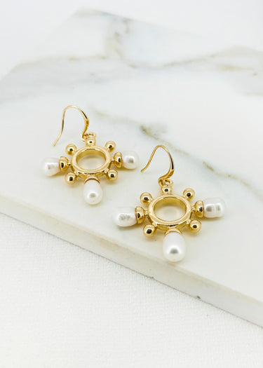 Wheel Earrings - Gold/pearl