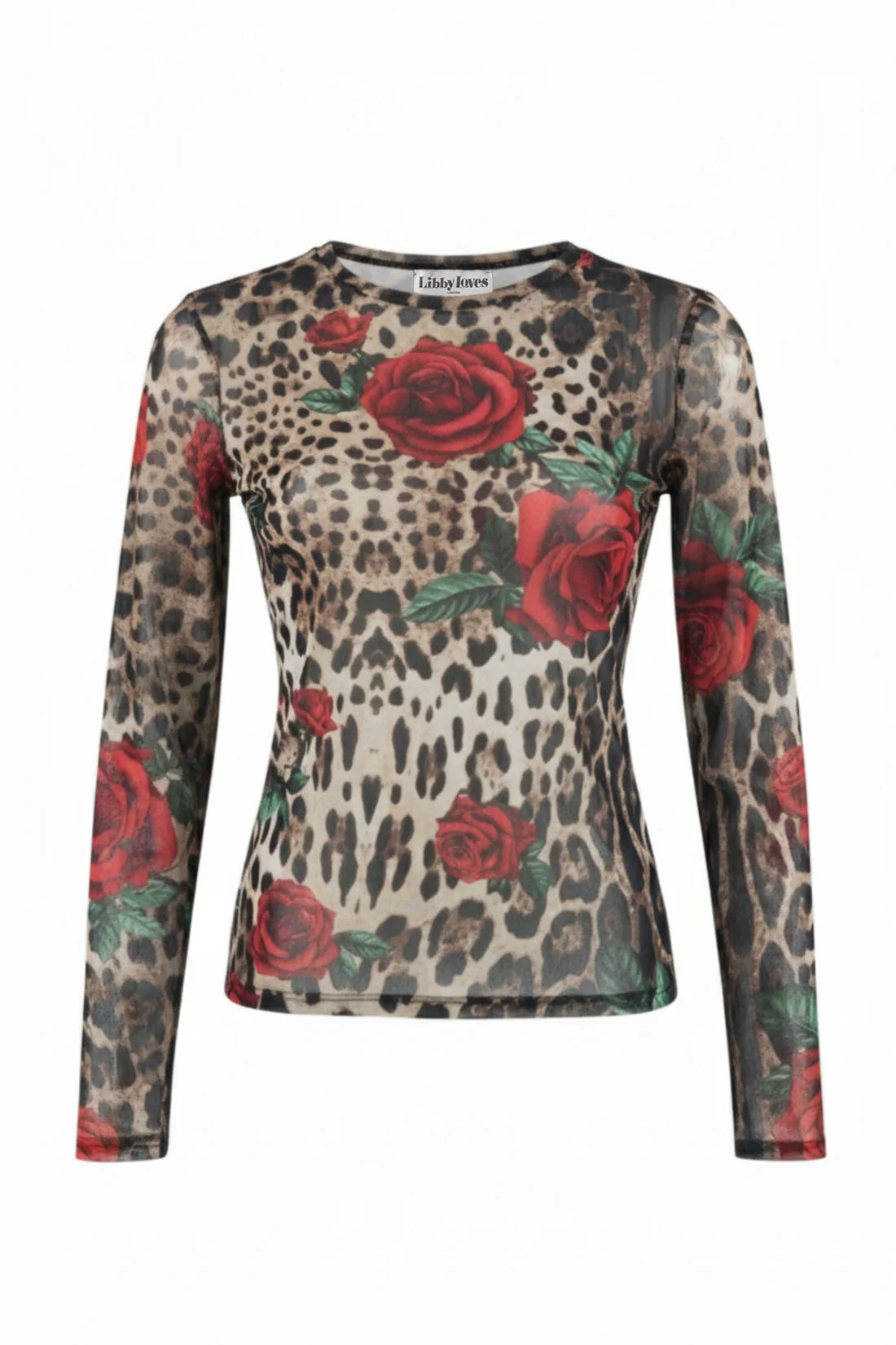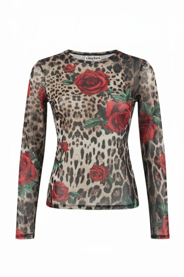 The Zoe mesh top is a gorgeous piece for your wardrobe that will transition easily through the seasons. Features a bold animal print design with rose detailing throughout, crew neckline, long sleeves and double layering with a black mesh lining at the front of the top.